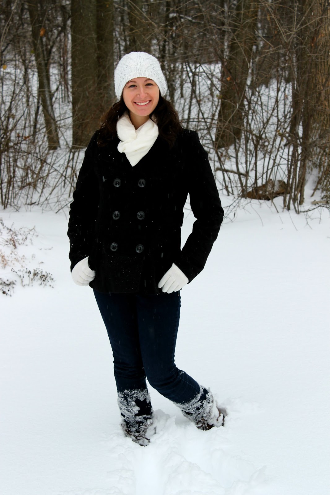 As soon as we got our first snowfall of the season (after Christmas...boo) we were antsy to get out and take some pictures in the snow. We chose my backyard as our backdrop. I have a pretty big backyard for the suburbs and, as a bonus, there's a small patch of woods and (even extra bonus) an abandoned house!